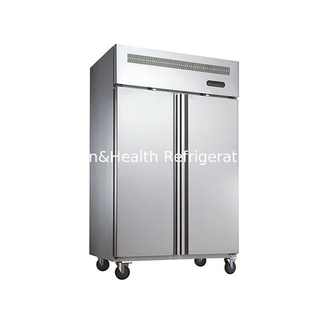 Freezer vertikal stainless steel untuk menyimpan makanan di dapur restoran